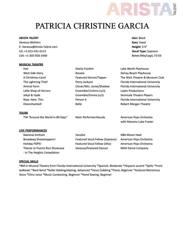 Patricia Christine Garcia (she/her) is a passionate and driven soprano with a powerhouse voice, signed with ARISTA Talent. A proud Cuban-American artist, she recently won first place in the NATS Gold Coast Upper Musical Theatre Category. Patricia made her professional debut with Loxen Entertainment’s Little Shop of Horrors, serving as an ensemble member and swing for Crystal, Ronette, and Chiffon. She is also active in voice dubbing at Universal Cinergia Dubbing. Some Musical Theatre credits include: Sheila in "HAIR," Rosalia in "West Side Story," and Percy Jackson in "The Lightning Thief."